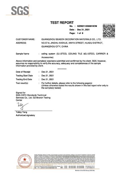 Standard: BS476-6,7 Fireproof TestNumber: SDFS2111007596FFIssue Date: 2021-11-30Expiry Date: